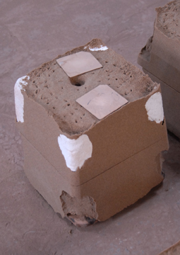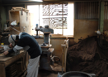 その後、金枠を上下ひっくり返して上型に砂を流し込んで押し固めます。